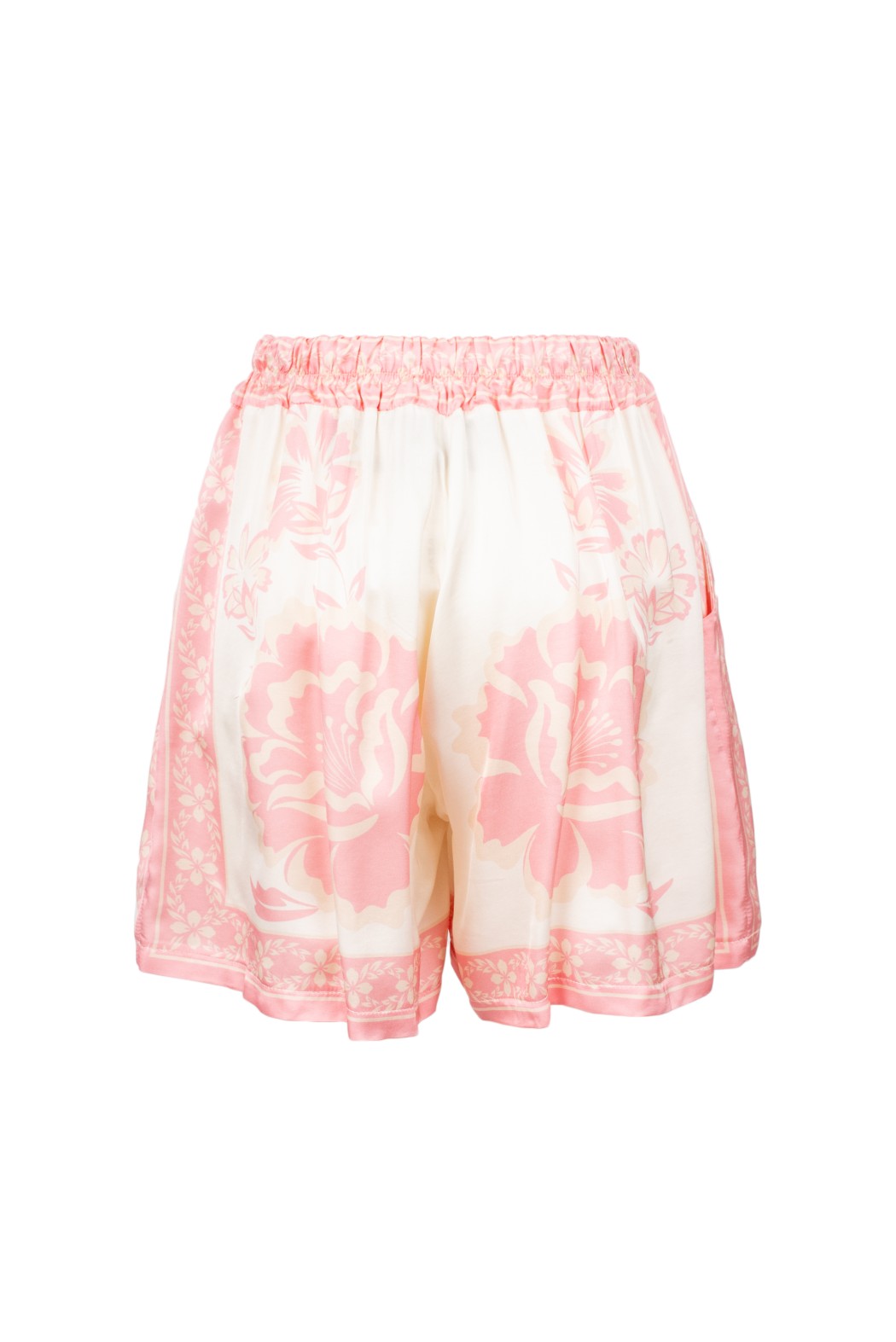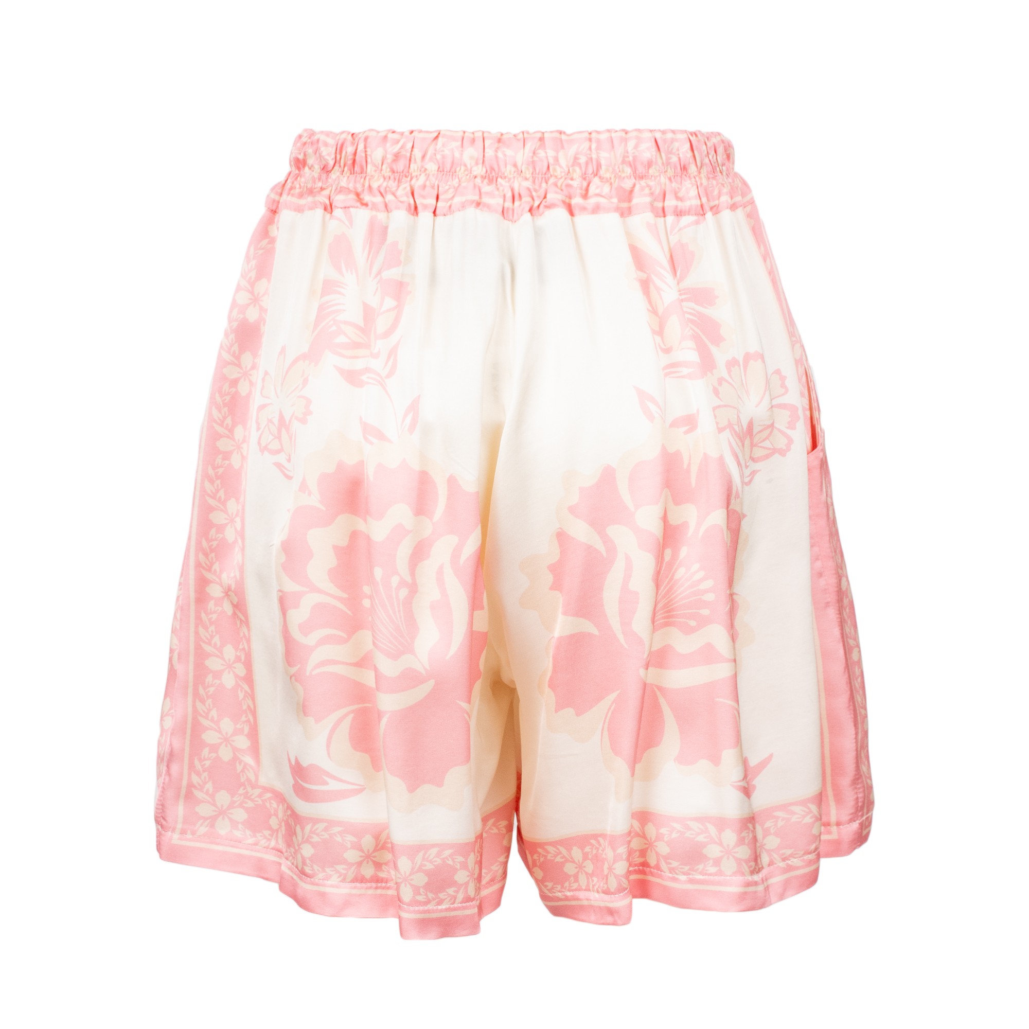 Elevate your summer wardrobe with the Minas shorts. Featuring a sophisticated pink floral print on a cream base, these fluid shorts offer a comfortable elasticated waist and practical side pockets for effortless elegance.
