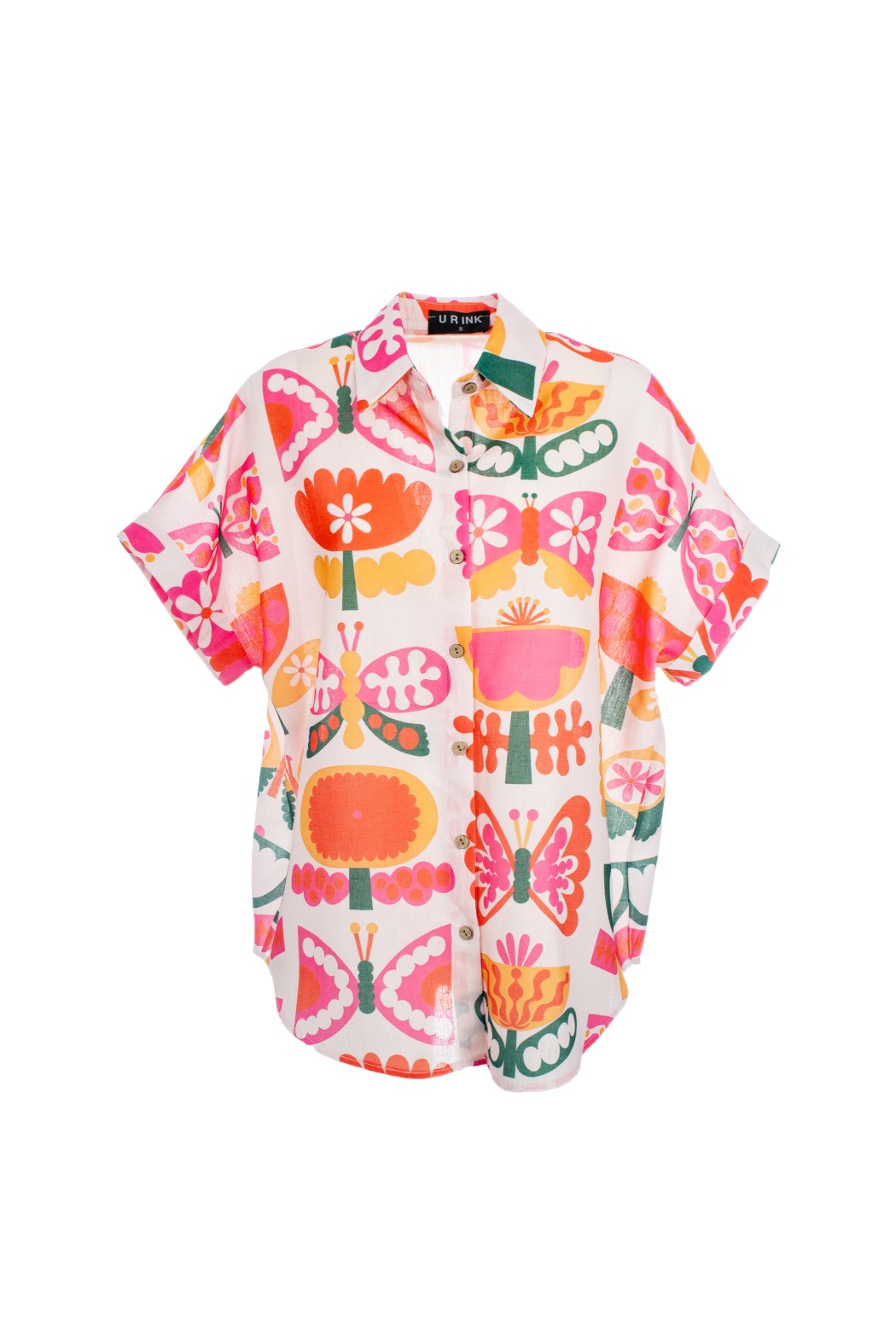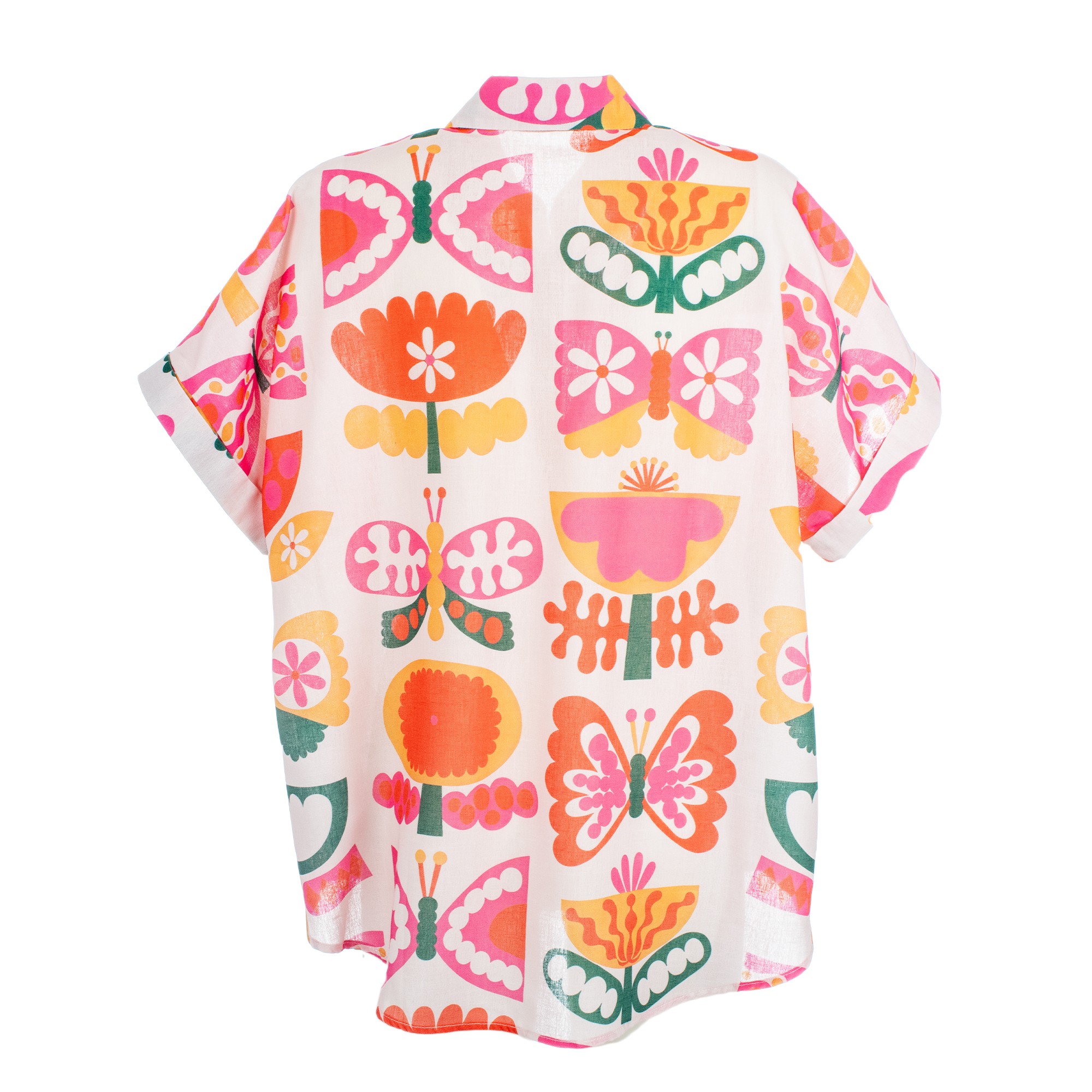 Add a burst of color to your summer style with the Ivissa Pink Shirt. Boasting a retro-inspired butterfly and floral print, this lightweight button-up features a relaxed fit, short sleeves with cuffed details, and a classic collar. Perfect for warm-weather adventures, it offers a vibrant Ibiza-inspired look that pairs beautifully with the matching trousers.