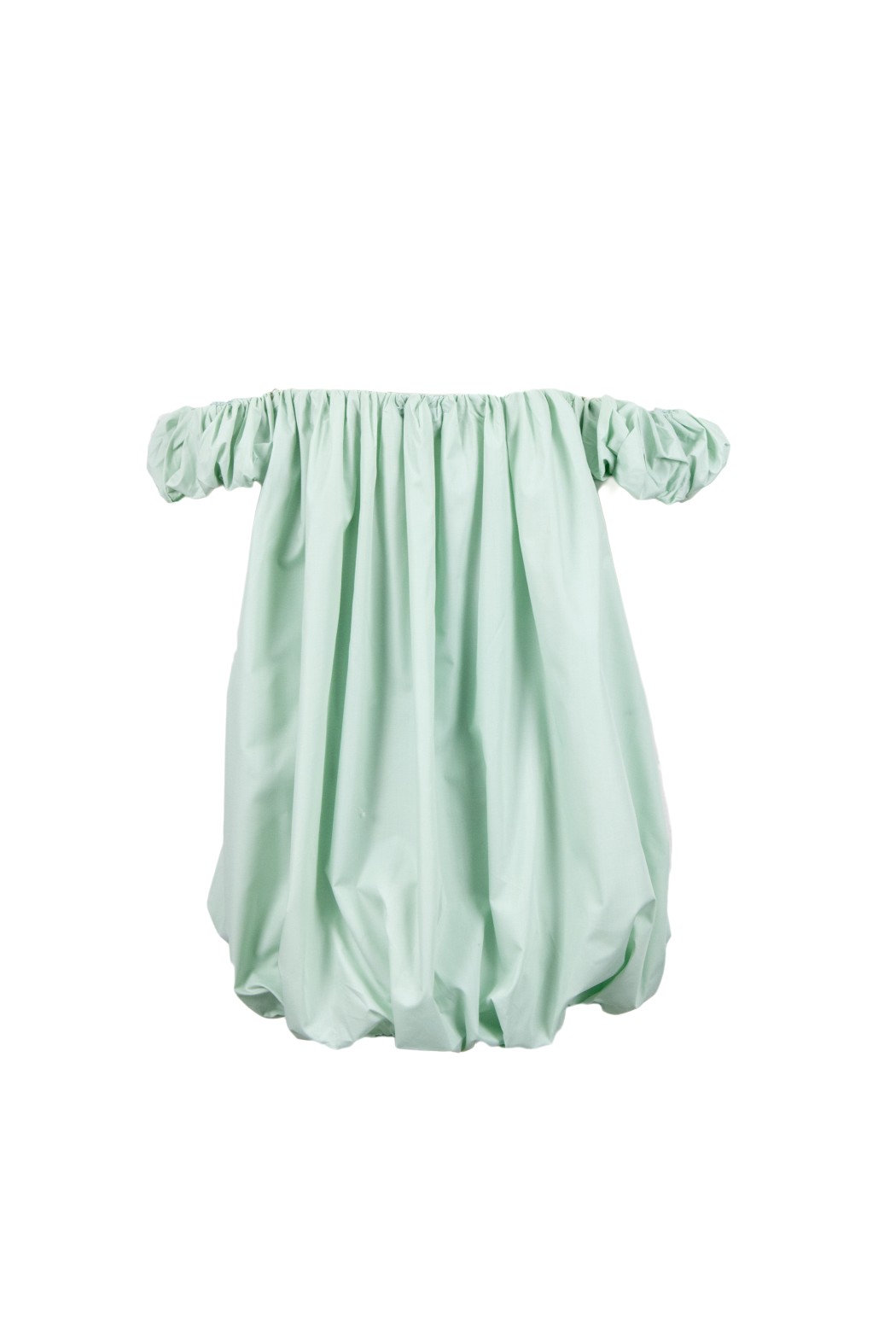 Abito mini palloncino scollo dritto, tessuto drappeggiato.