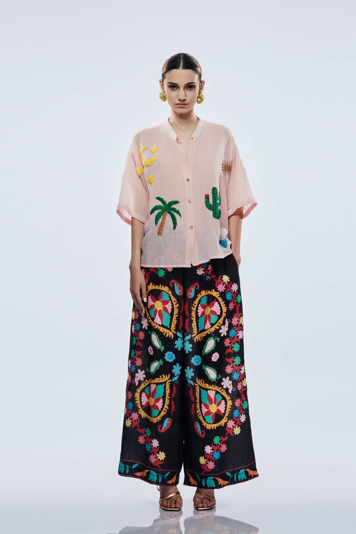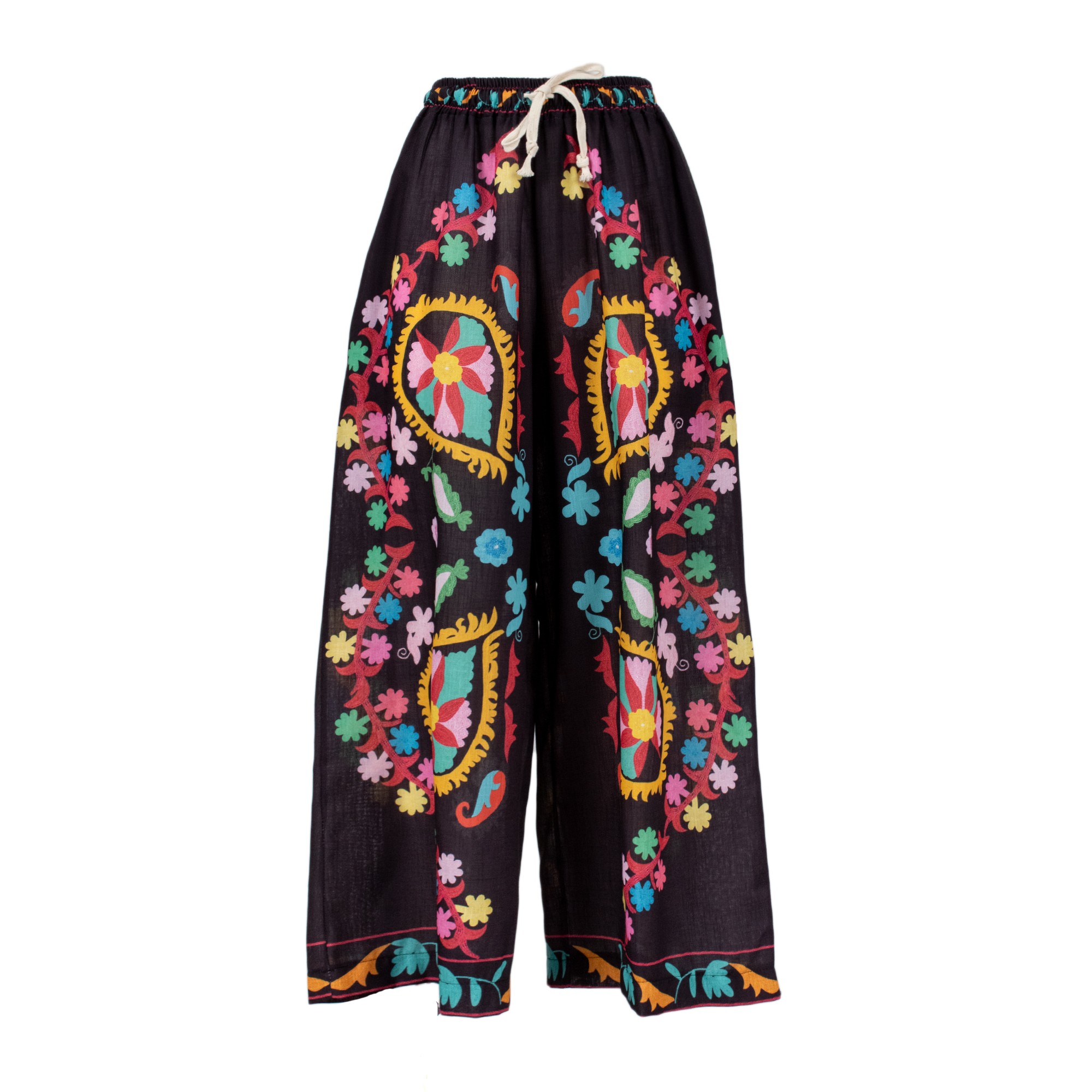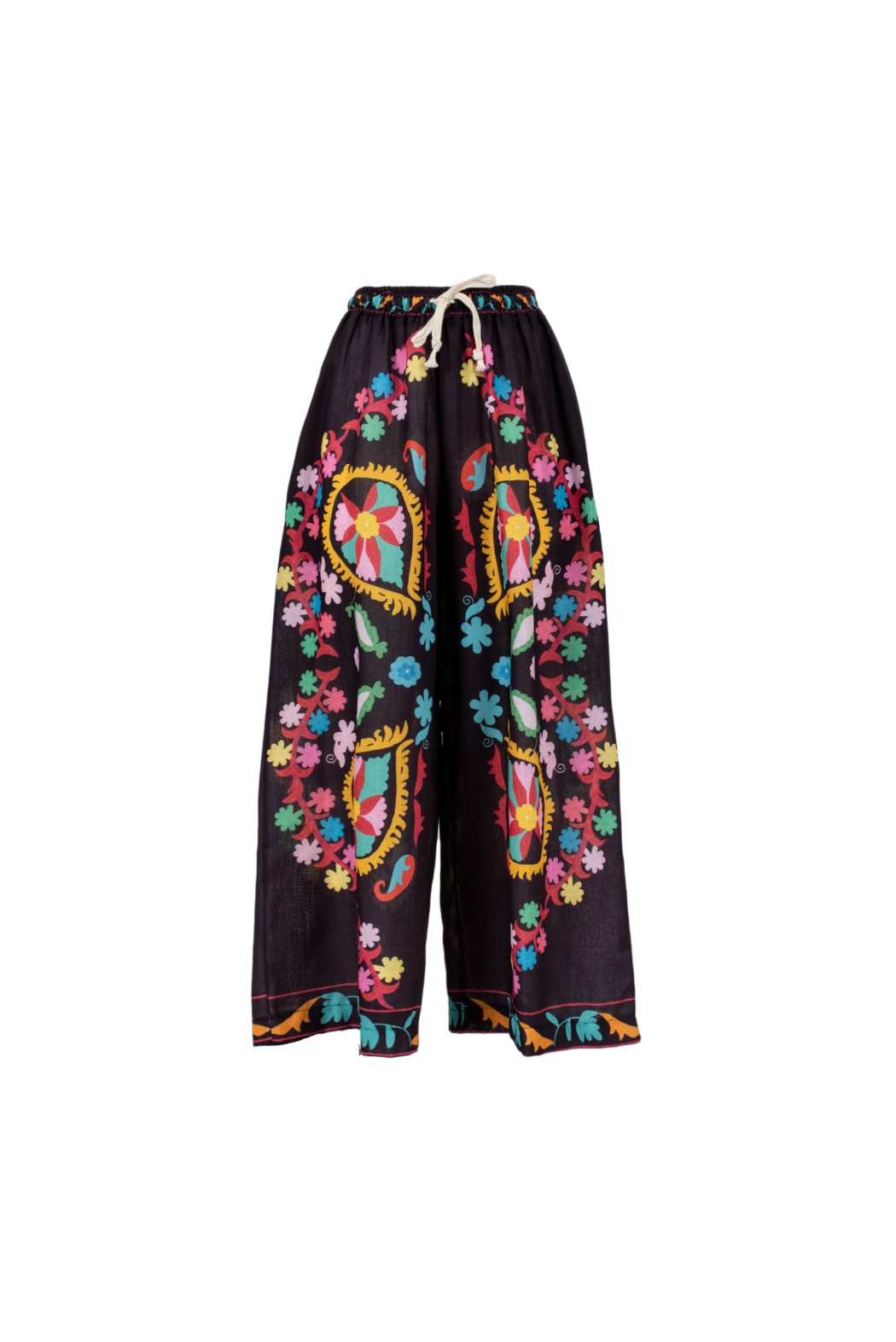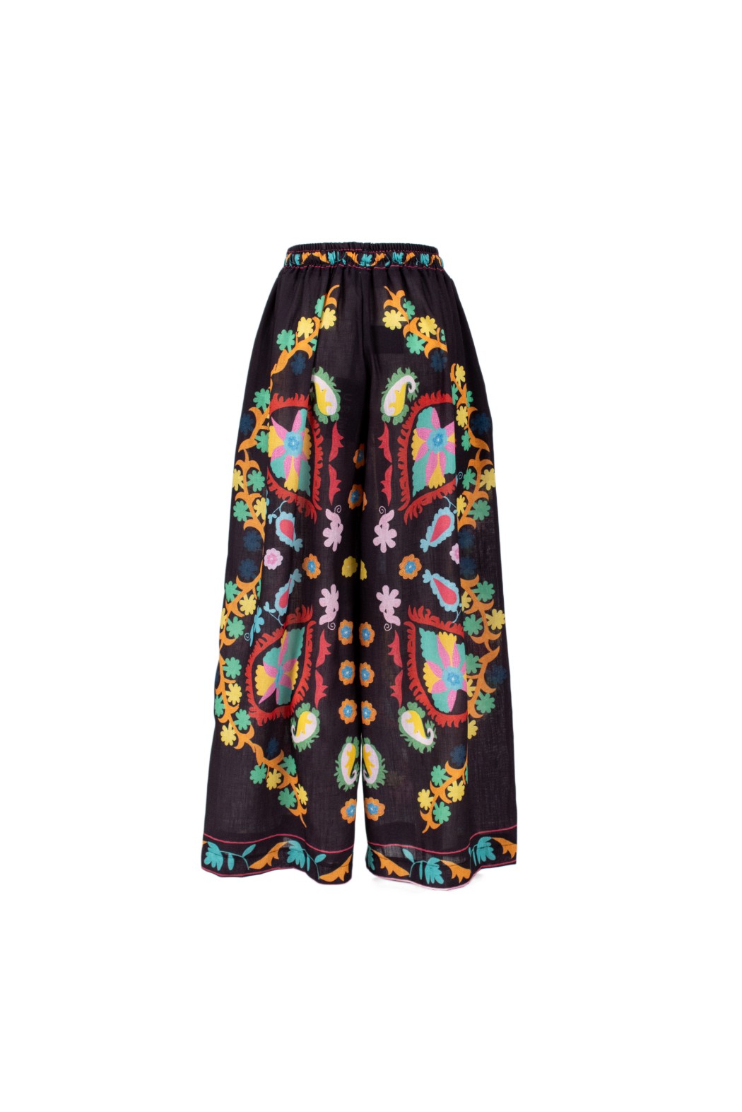 Pantalone full lenght stampa fantasia, elastico e coulisse in vita.