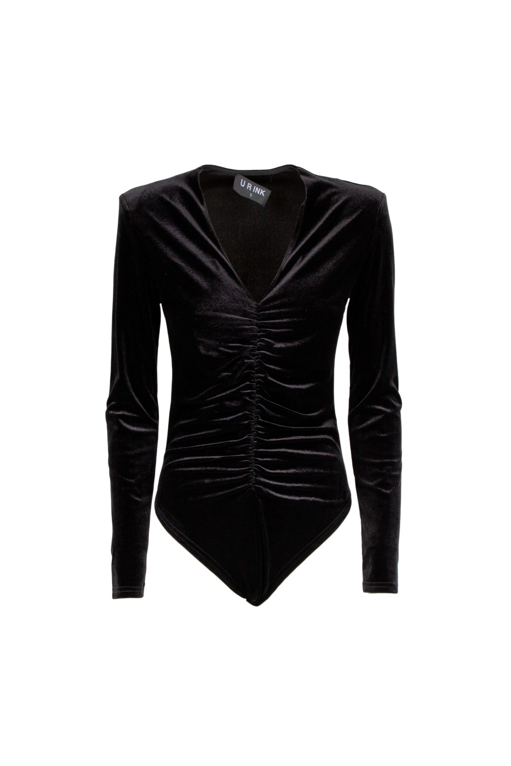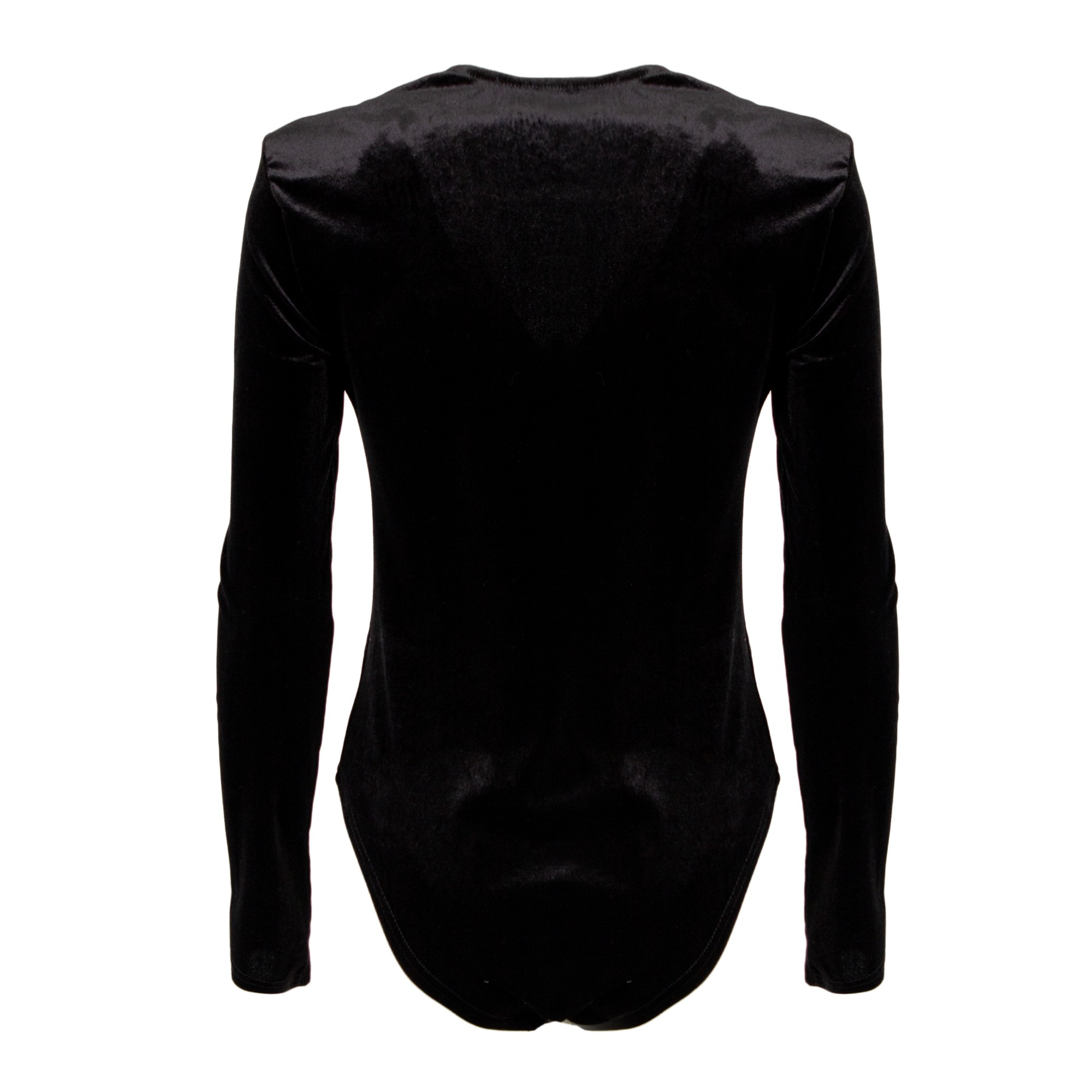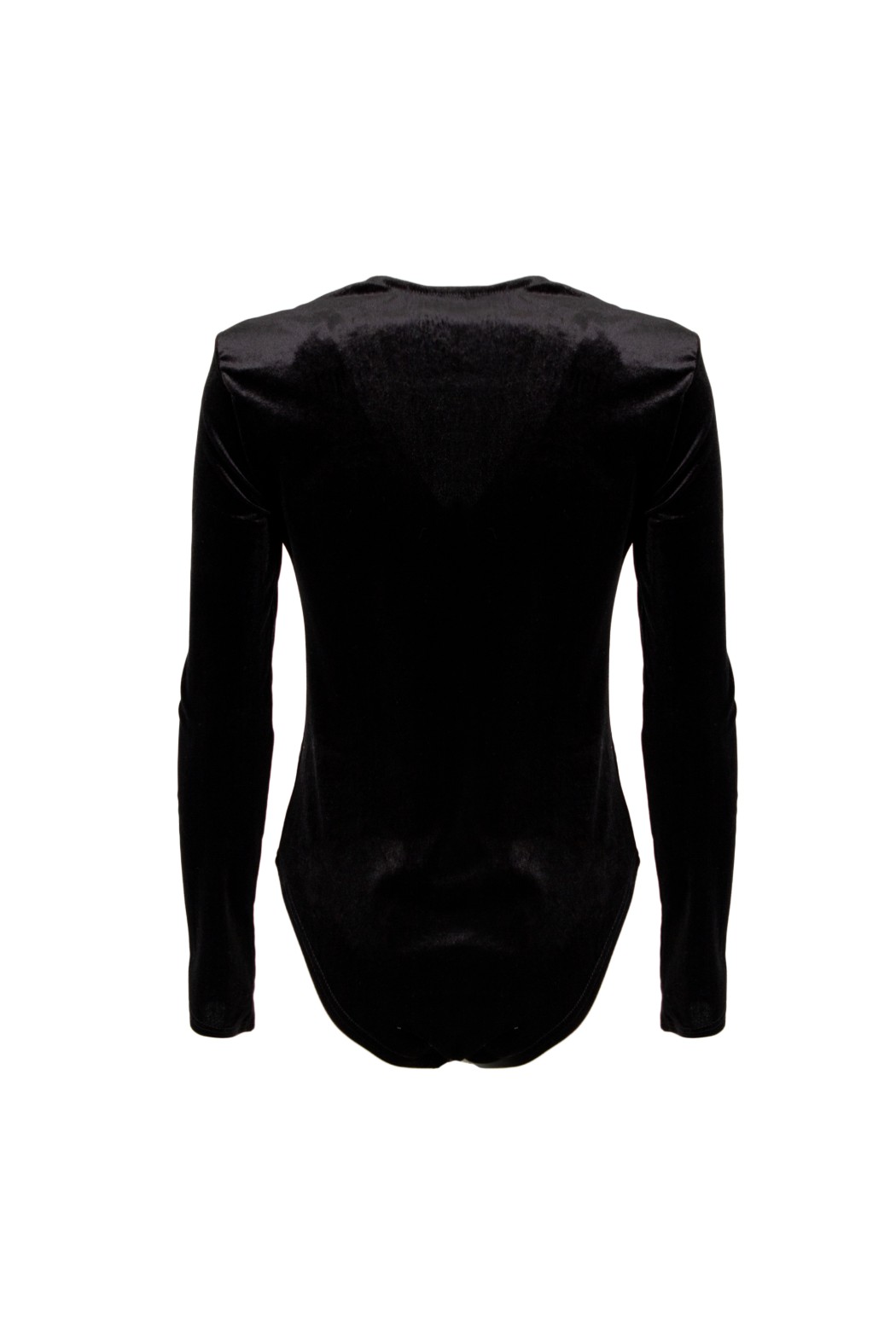 Body a maniche lunghe in velluto. Il capo presenta un profondo scollo a V e delle arricciature frontali.