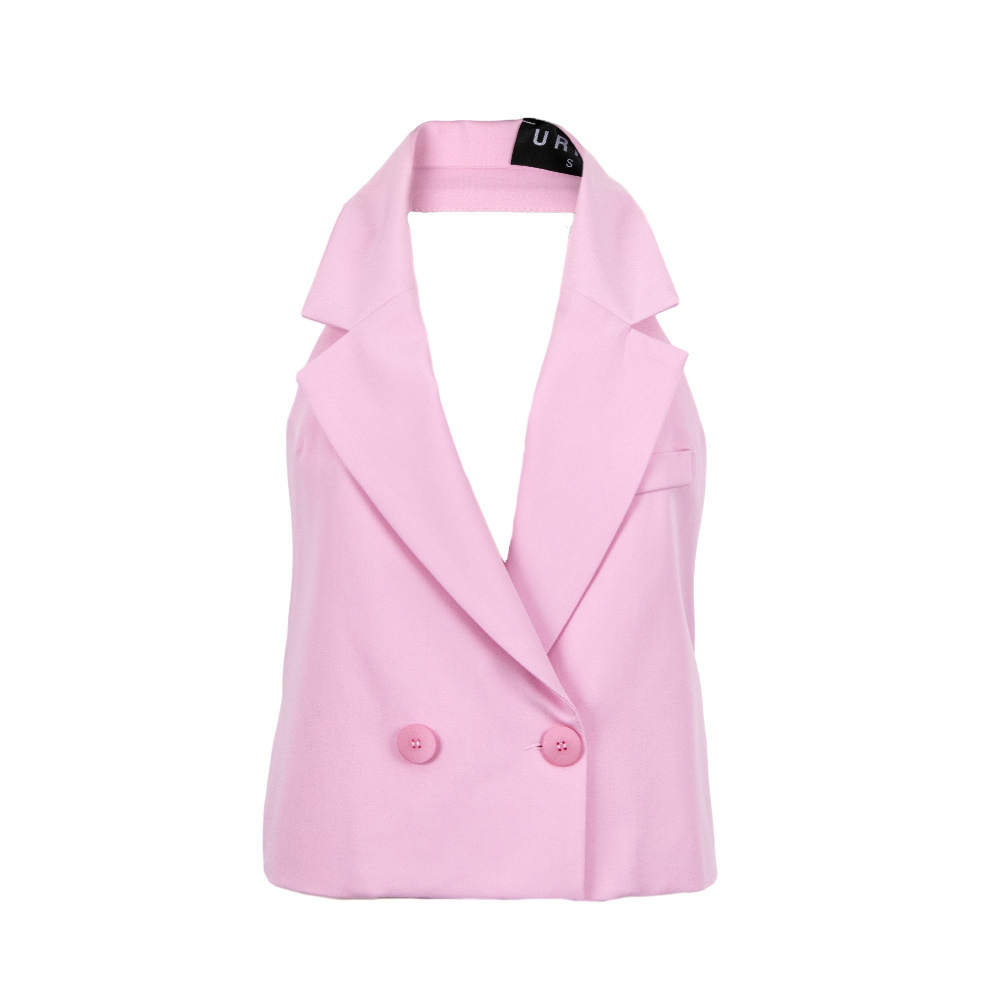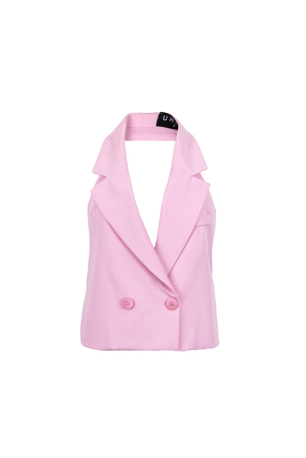 Top gilet doppio petto, collo a revers, scoperto sulla schiena.